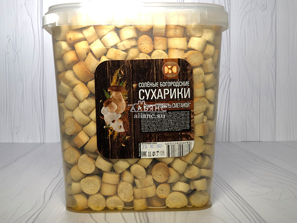Удивительно нежный вкус хрустящих сухариков с грибами и сметаной превосходно сочетается со всеми сортами пенного напитка. Яркий узнаваемый вкус лесных грибов смягчается сливочной сметанной ноткой с едва уловимой кислинкой ещё никого не оставил равнодушным. Упакованные в ведро с крышкой, сухарики со вкусом сметаны и грибов длительное время сохраняют свою свежесть и неповторимый аромат. А ещё такой компактный формат можно взять с собой, чтобы весело и вкусно провести время в компании друзей. Чтобы купить в Москве лучшие снэки и закуски, заходите на сайт нашего интернет-магазина. У нас большой выбор продукции к пиву по самым привлекательным ценам. Также мы осуществляем оперативную доставку ваших заказов в любую точку страны.